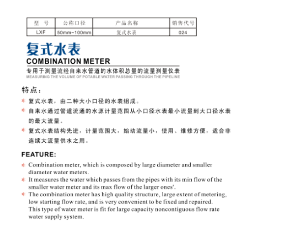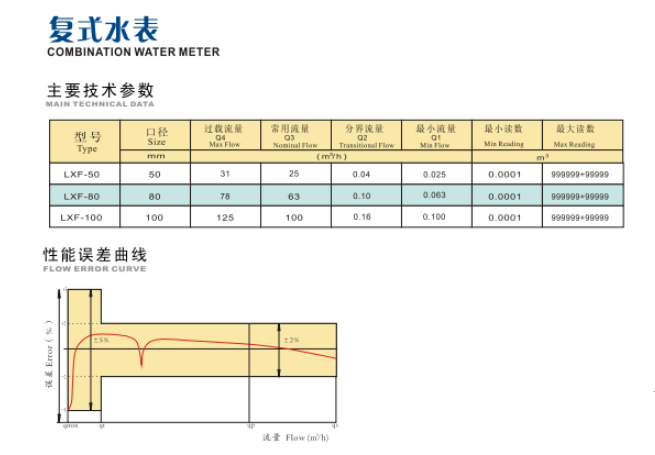 头号玩家官网登录入口LXF-复式水表技术参数: